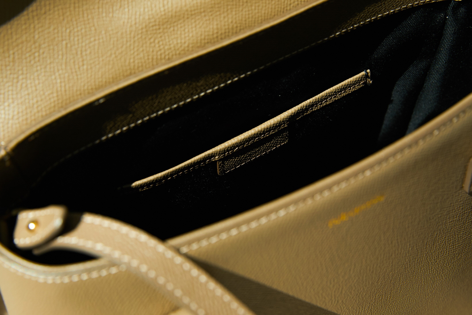 이 가죽은 스크레치에 강하고 탄탄하여 가방의 각이 오래 유지되는 장점이 있습니다.