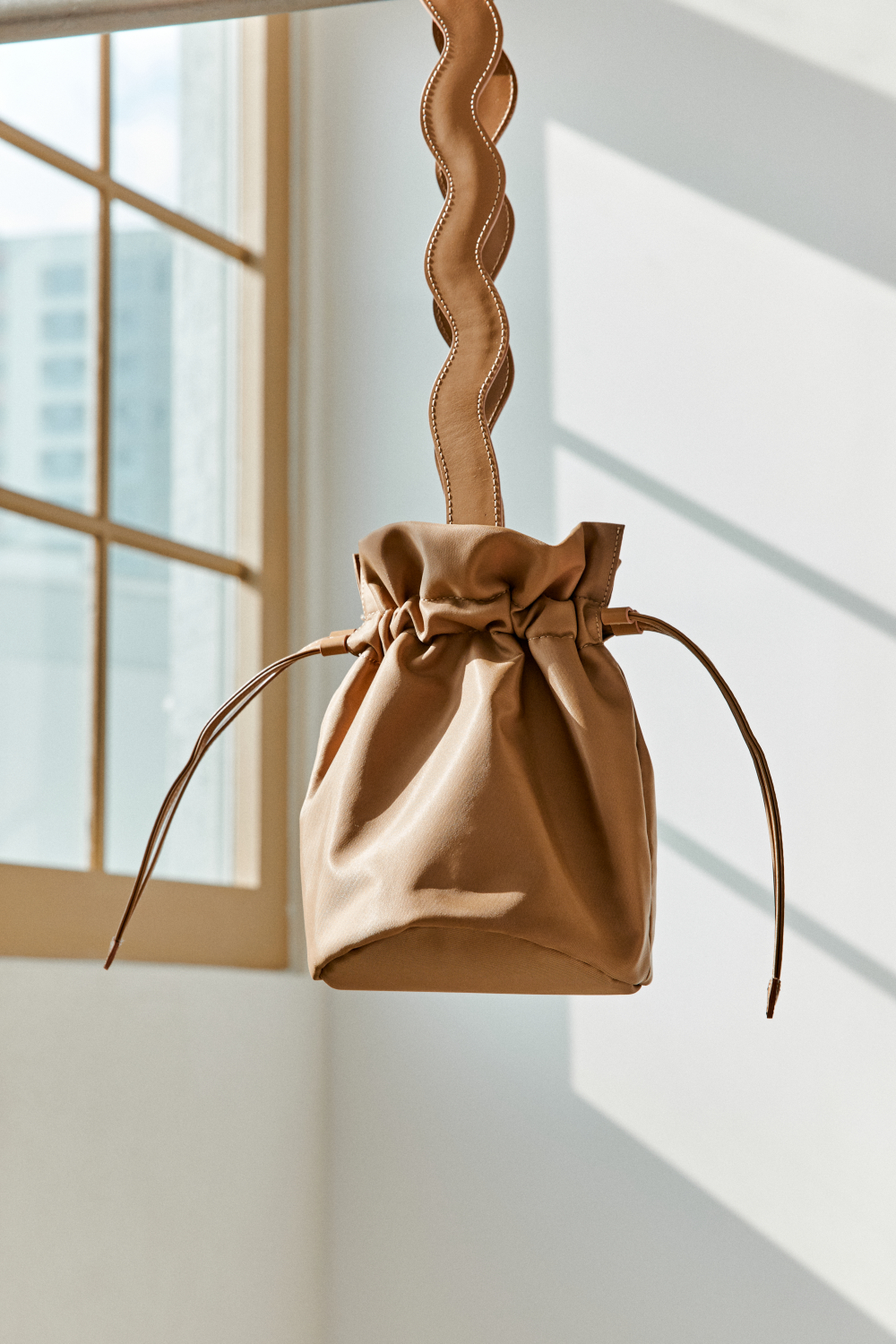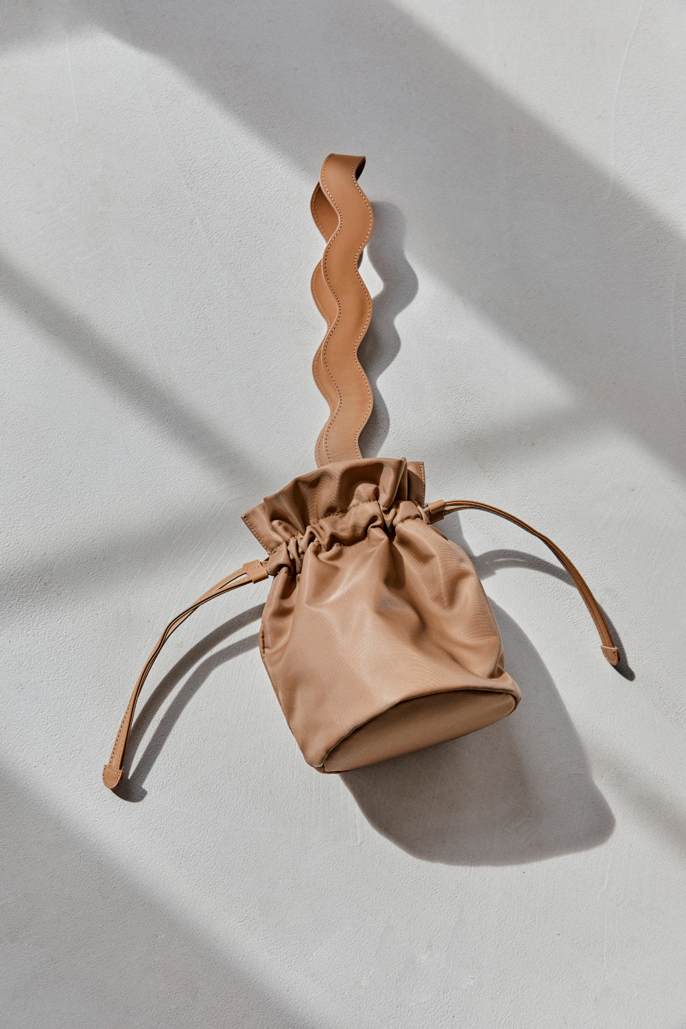 가볍고 실용적인 버켓백 스타일의 숄더백으로, 루바렐의 시그니쳐인 프릴을 평면적으로 연출하여 아름다운 라인의 스트랩을 만들었습니다.